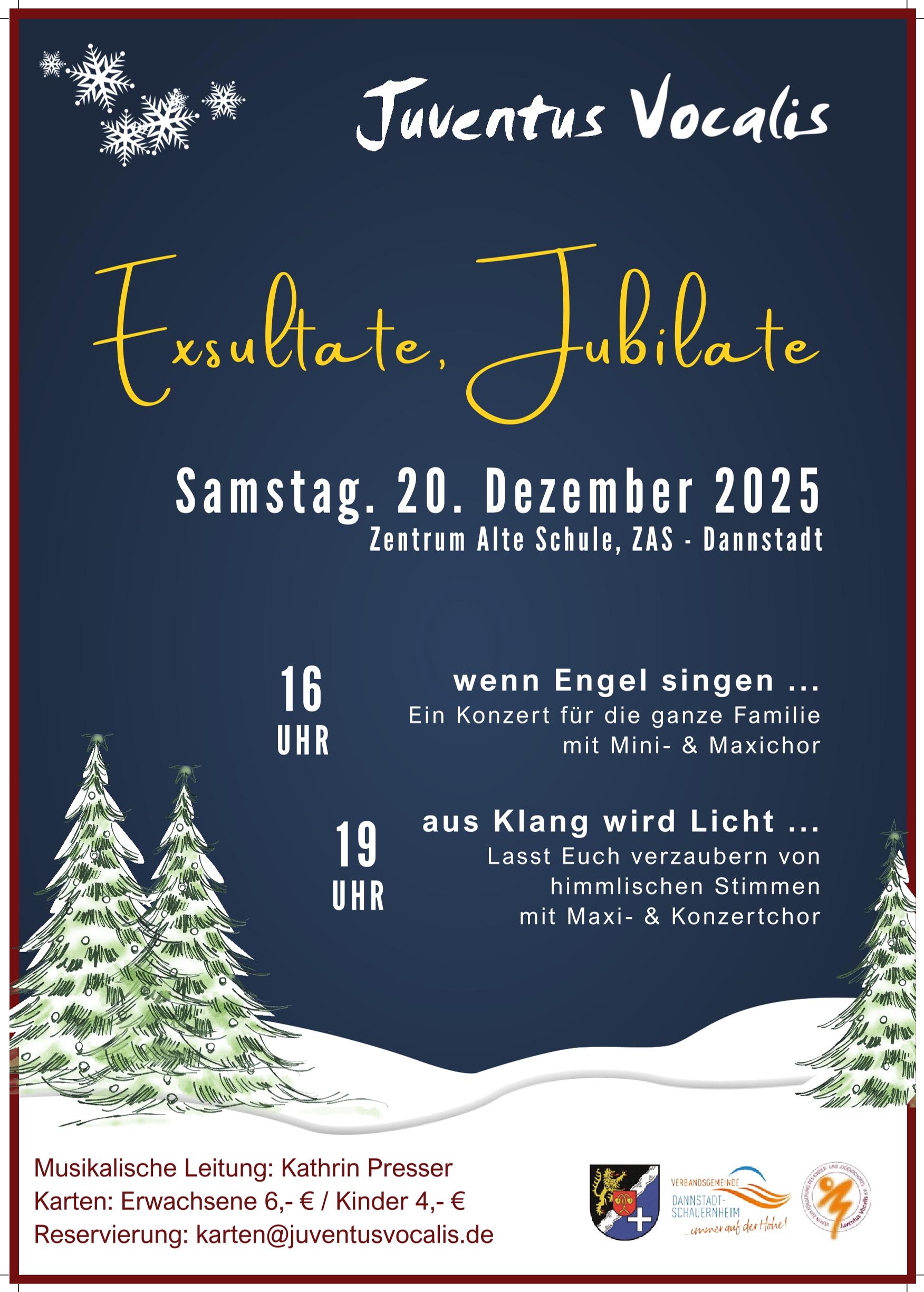 Der Kinder- und Jugendchor Juventus Vocalis besteht seit über 30 Jahren. Er wurde 1987 unter der Trägerschaft des Rhein-Pfalz-Kreises und der Verbandsgemeinde Dannstadt-Schauernheim mit der Sopranistin und Gesangspädagogin Judith Janzen gegründet. Seither beeindruckt der Chor mit hervorragenden Leistungen und künstlerischer Hingabe Publikum und Kritiker gleichermaßen. 2018 hat Kathrin Presser die künstlerische Leitung übernommen.